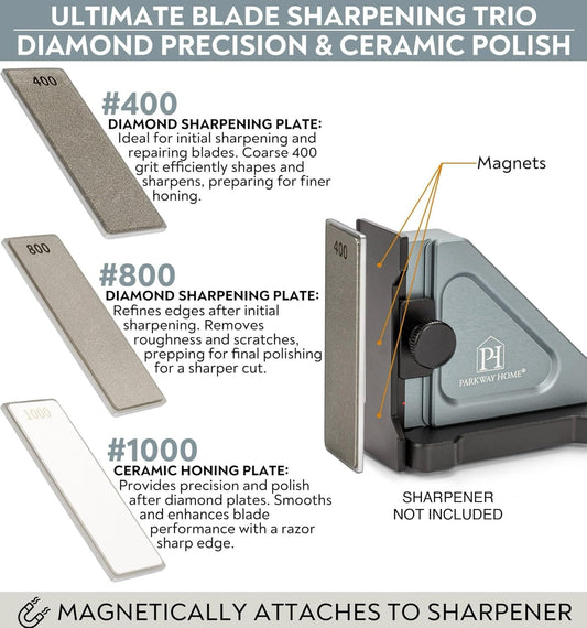 Replacement Whetstone Plates Set – Includes 3 Plates: #400, #800, and #1000 Grit for Precision Sharpening & Honing - Compatible Only with Parkway Home Adjustable Rolling Knife Sharpener