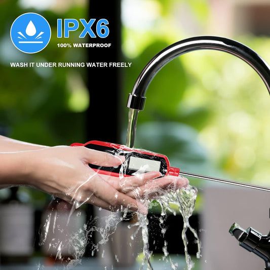 Lonicera Digital Cooking Thermometer for Bread Baking, Food and Water Temperature Measurement. Waterproof and Long Stem with Meat Temp Guide, Display with Backlit (Red)