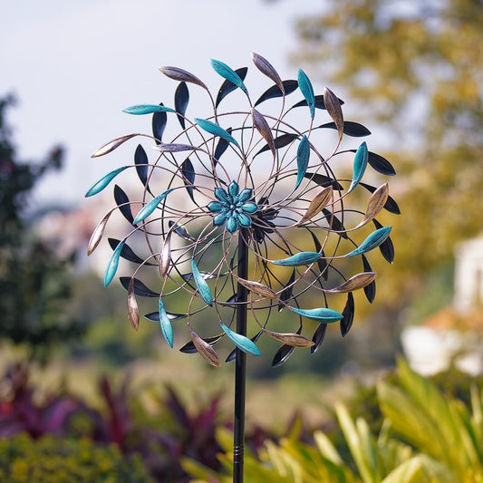 DREAMYSOUL Wind Spinner Outdoor, 23" Dia Metal Windmills with Blue and Copper Leaves, Kinetic Wind Spinners & Sculpture for Yard and Garden