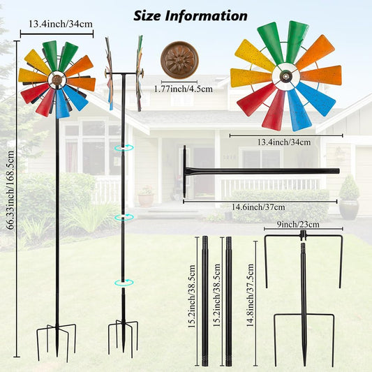 Stargarden Wind Spinners Outdoor, 13.4 Inch Kinetic Pinwheels, Colorful Metal Garden Spinners Double Windmill for Yard, Lawn, Patio