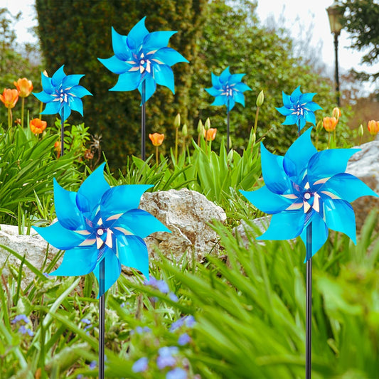 Hausse 10 Pack Reflective Pinwheels Wind Spinner, Extra Sparkly Pinwheel with Stakes, Bird Repellent Blinder Devices Deterrent to Scare Birds Away from Yard Patio Farm Garden, Transparent Blue
