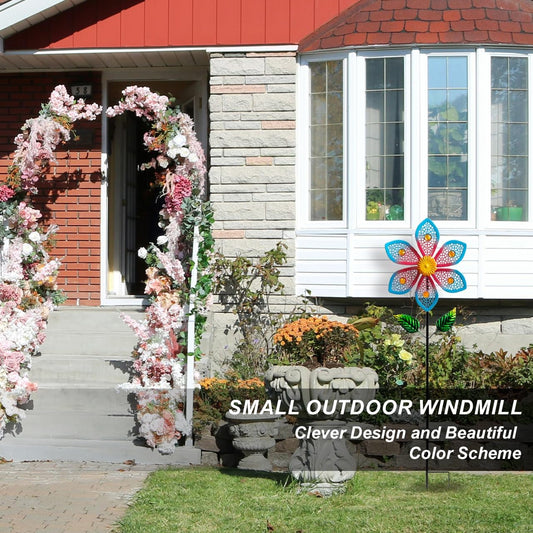 Metal Wind Spinners for Garden Decor - Outdoor Windmill Sculptures, Durable Yard Art Wind Spinners Metal Wind Spinner for Patio Lawn Ornament, Vibrant Red & Blue Garden Spinners Outdoor