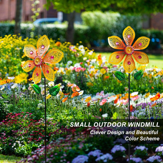 Garden Wind Spinners & Metal Wind Sculptures - Outdoor Windmill Decor with Vibrant Yellow, Yard Art for Patio Lawn Garden Ornament, Dynamic Wind Spinner Sculpture for Landscape Decor
