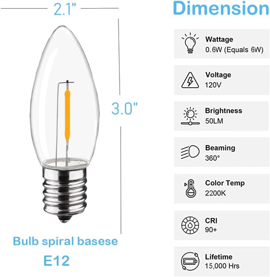 C9 Christmas Replacement LED Light Bulbs, E17 Base Commercial Grade Holiday Bulbs, 4W 5W 6W 7W Incandescent Equivalent, Warm White 2200K, Clear Plastic Bulbs for Christmas String Light - 50 Pack