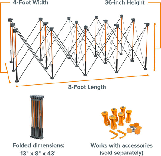 BORA Centipede 30in Folding Work Table Set - No Assembly 15-Strut Collapsible Table 6000lb Weight Limit - 4x8ft Mobile Work Station with Storage Bag, Foldable Work Bench Table - CK15S, Orange