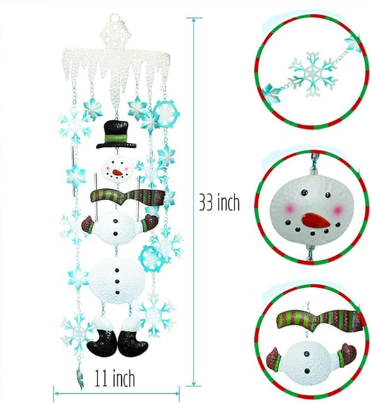 Juegoal Christmas Snowman Wind Chimes with Metal Snowflake, Large for Kids, Xmas Holiday Party Indoor Outdoor Hanging Decoration, 33 Inch