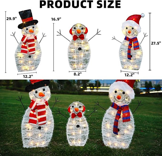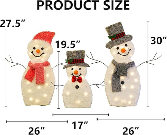 Dazzle Bright Snowman Christmas Decorations, 3-Piece Light Up 2D Snowman Family, 60 L Snowman Waterproof for Indoor or Outdoor Garden Yard Lawn Holiday Party Decor (Plush)