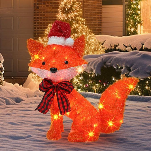 Dazzle Bright 3D 20in Lighted Christmas Fox, Christmas Decorations Outdoor Pre-Lit 35 L Fox with Lights, Light Up Xmas Decor for Indoor Outdoor Festive Holiday Garden Yard Lawn Patio