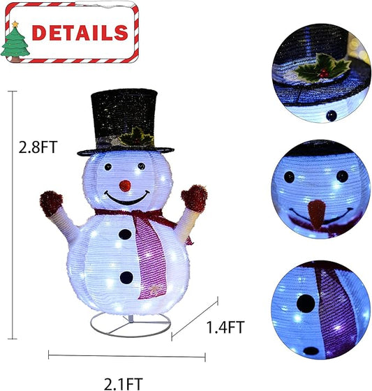 Dazzle Bright Christmas Snowman Decorations, 3FT Pre-Lit 48 LED Lighted Collapsible Snowman with Black Hat, Pop Up Snowman with Metal Stand for Indoor Outdoor Xmas Garden Yard Home Party Decor
