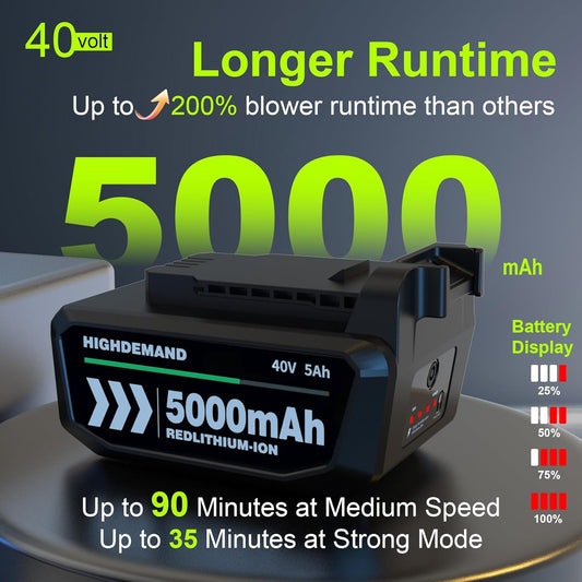Leaf Blower Cordless with Battery - 40V Powerful Electric Leaf Blower, 600CFM &180MPH and Variable-Speed with 5.0Ah Battery and Charger for Lawn Care, Patio, Dust, Blowing Leaves (Grey)
