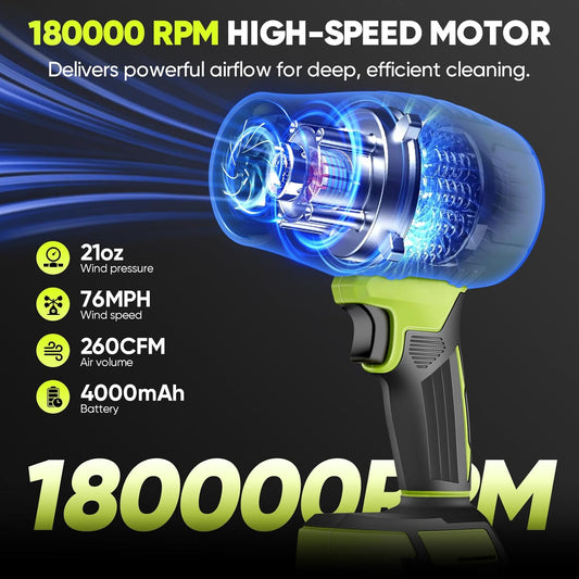 Cordless Leaf Blower with 4000mAh Battery,180MPH Battery Powered Blower,6 Speeds Electric Handheld Leaf Blower for Snow Blowing & Lawn Care