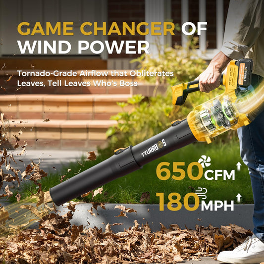 Leaf Blower Cordless - 650CFM Brushless Motor Leaf Blower with 6-Speed Control & Ergonomic Handle - Includes 2 x 5.0Ah Batteries & Fast Charger - Blowers for Lawn Care, Yard, Patio, Leaves, Snow, Dust