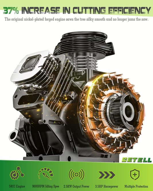 Professional 58cc Gas Powered Chainsaw with Quick-Switch Dual Bar 18/20 Inch System – Heavy Duty Chain Saw with Easy-Start for Tree Cutting, Limbing & Farm Use (GEL9901)