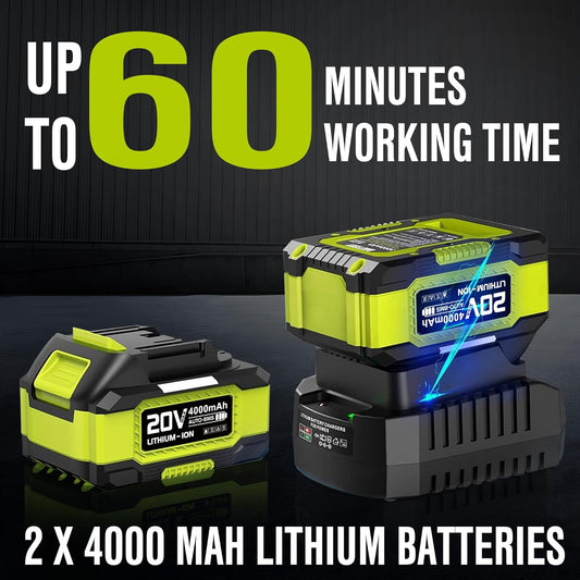 Cordless Leaf Blower 20V Powerful Electric Leaf Blower with 2x4.0Ah Batteries and Charger, Variable Speed & Turbo, Up to 550CFM and 150MPH Lightweight Battery Powered Leaf Blowers for Lawn Care, Patio