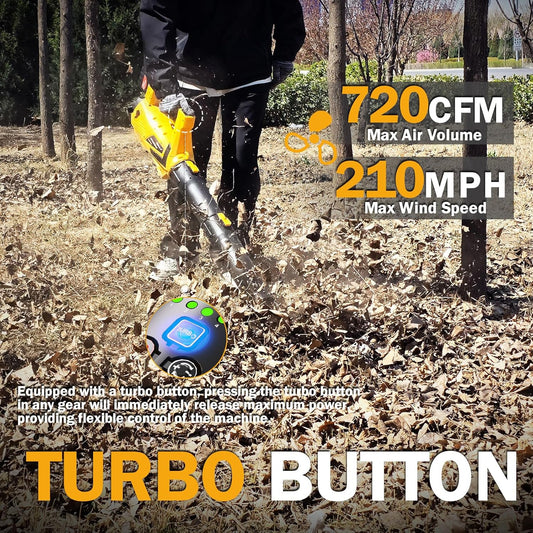 Leaf Blower Cordless,720CFM 210MPH Electric Blower with 2 x 21V 6.0Ah Battery and Charger, 5-Variable Speed & Turbo Mode, Blowers for Lawn Care (E 5003) (Black Yellow)