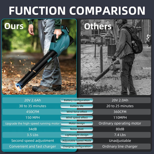 2025 Upgrade Leaf Blower,Leaf Blower Cordless with 2 * 2.6AH Batteries and Fast Charger, 450CFM &150MPH and 2 Speed Mode, Lightweight Electric Leaf Blowers for Lawn,Yard, Leaves, Dust,Snow Care (BLUE)