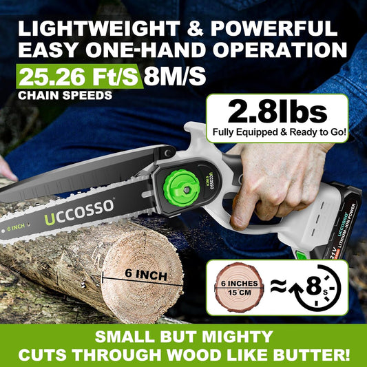 6Inch Mini Chainsaw Cordless - Electric Chainsaw with Strong Motor & 2×2.0Ah Battery, 2 Chains Included for Tree Trimming, Branches Cutting, Lightweight Handheld Chain saw for Garden/Yard Maintenance