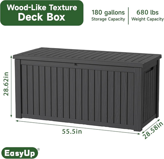 180 Gallon Outdoor Storage Box Waterproof, UV Resistant Resin Deck Box with Hydraulic Rod, Reinforced Stability for Patio, Garden, and Pool, Striped Black