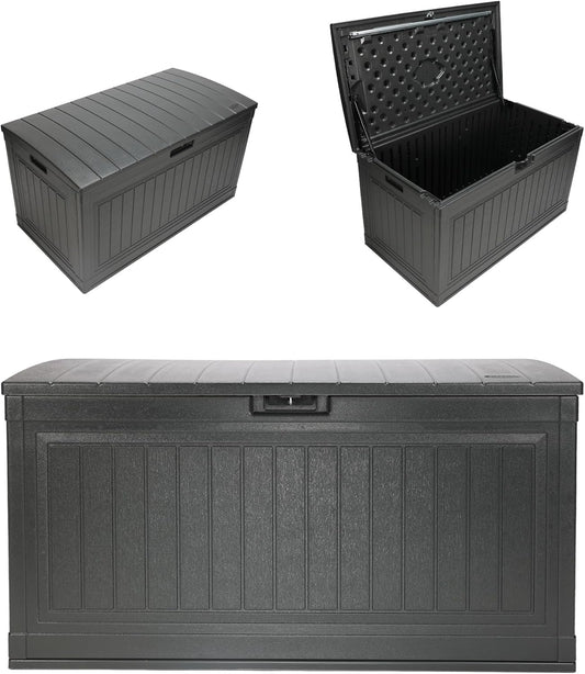 260 Gallon Waterproof Outdoor Storage Box,Large Resin Deck Box,Lockable Outside Storage Box Container for Patio Furniure,Garden,Tools (260 Gallon,Black)