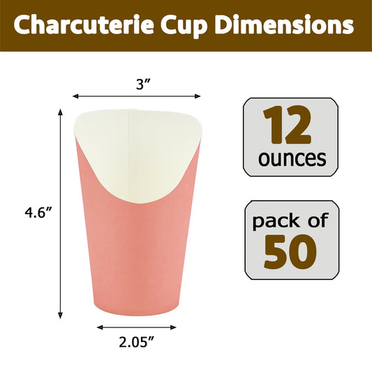CAMKYDE 50 Pcs French Fries Holder, 12oz Disposable Paper French Fry Cups Charcuterie Cups for all Occasions (12oz)