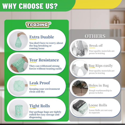 RAYTID 120 Counts 1.6 Gallon (1.6-1.75-2 Gal) Compost bin kitchen Bags, Strong compost bags for countertop bin, Fit 4.5,6,7,8 Liters.ASTM D6400, US BPI and Europe OK compost HOME certified