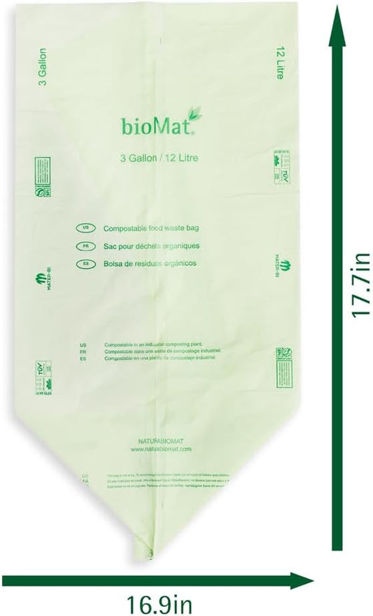 bioMat 3 Gallon Compost Bags, 125 Count, Compostable Trash Bags for Kitchen Compost Bin, BPI ASTM D6400 and CMA Certified Biodegradable Trash Bags