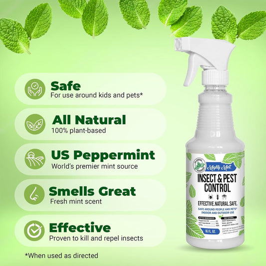 Mighty Mint Peppermint Oil Insect Repellent Spray – Natural Indoor & Outdoor Bug Control for Spiders, Ants, Roaches, and More – Plant-Based, Extra-Strong Formula - 16 oz