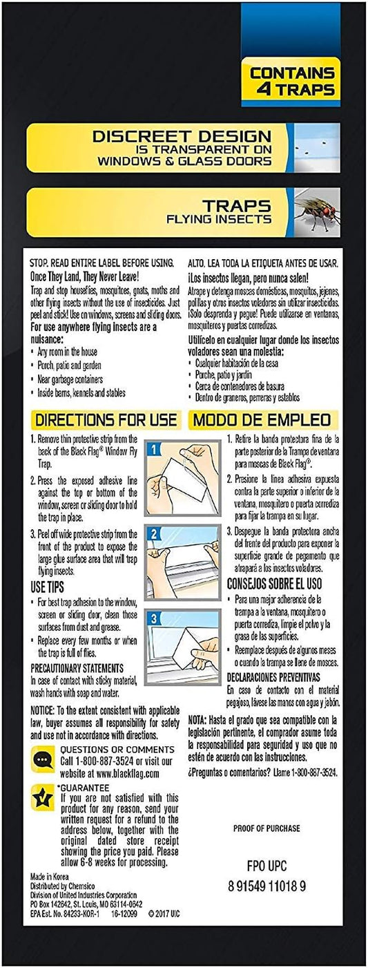 Black Flag Window Fly Trap, Transparent Glue Traps 4 Count
