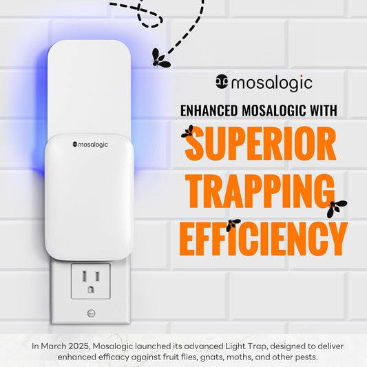 Mosalogic Fruit Fly Traps for Indoors Gnat Trap for House Indoor- 600 Sqft Protection Area UV Fly Insect Trapper for Fruit Flies,Gnat,Mosquito,and Other Flying Insect Plug in Bug Killer White