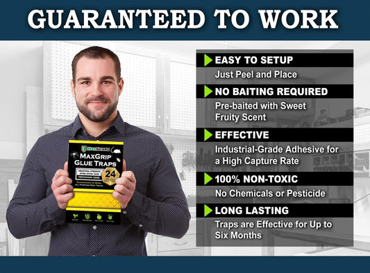 MaxGuard MaxGrip Glue Traps (24 Traps) Non-Toxic Extra Sticky Glue Board Pre-Baited with Fruity Scent Attractant Trap & Kill Insects, Bugs, Spiders, Crickets, Scorpions, Cockroaches, Centipedes, Mice
