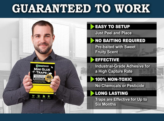 MaxGuard Mini Glue Traps (48 Traps) Non-Toxic Extra Sticky Glue Board Pre-Baited with Fruity Scent Attractant Trap & Kill Insects, Bugs, Spiders, Crickets, Scorpions, Cockroaches, Centipedes, Mice