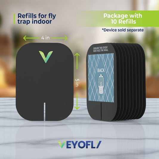 VEYOFLY Fly Trap Indoor Refill, Fruit Fly Traps, Gnat Traps for House,Fly Catcher, Fly Trap,Plug in Catch for Fruit Flies,Moths,Gnats, Mosquito Trap (Pack of 10 Refills-Black)