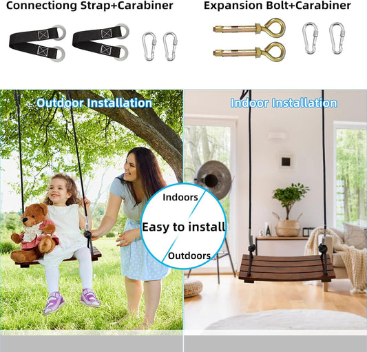 Wooden Tree Swing,500lbs Load Capacity Wooden Swing for Adults & Kids,Adjustable Height,Waterproof Hanging Swing Seat for Indoor,Outdoor,Backyard,Garden,Playground (Adult)
