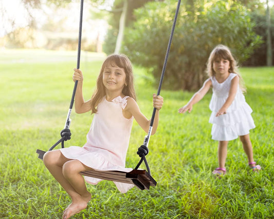 Teak Wood Swing 16.6"x7.5" - Outdoor Wooden Tree Swing Seat for Adults & Kids, Backyard Wood Swings with Height Adjustable Design