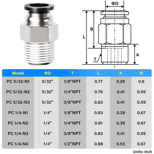 TAILONZ PNEUMATIC Elbow and Straight Combination 1/4 Inch Tube OD x 1/8 Inch NPT Thread Push to Connect Fittings PC-1/4-N1+PL-1/4-N1(Pack of 30)