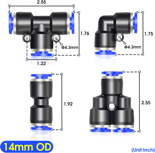 TAILONZ PNEUMATIC 14mm od Push to Connect Fittings Pneumatic Fittings Kit 2 Spliters+2 Elbows+2 tee+2 Straight (8 pcs)