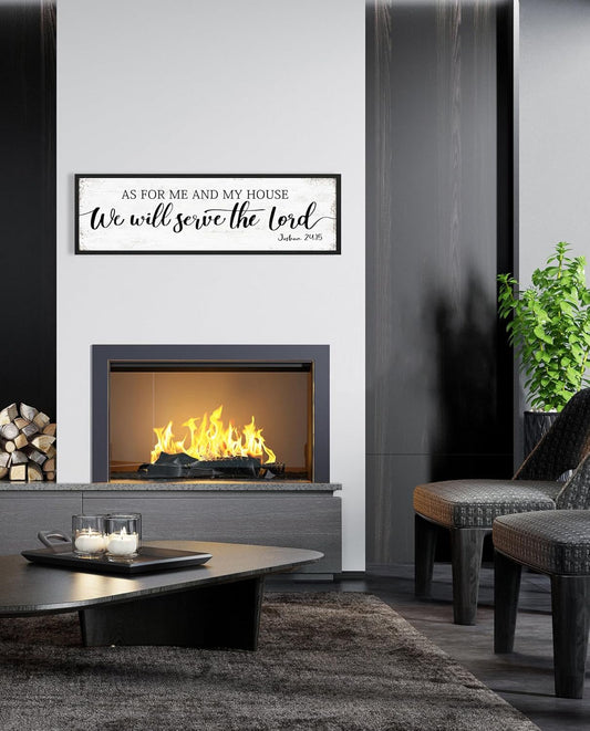 As for Me and My House We Will Serve the Lord Sign: Rustic Family Bedroom Signs Wall Decor Above Bed,Framed Country Wall Plaque Hanging Farmhouse Bible Verse Sign Christian Art Gifts 12" x 40"