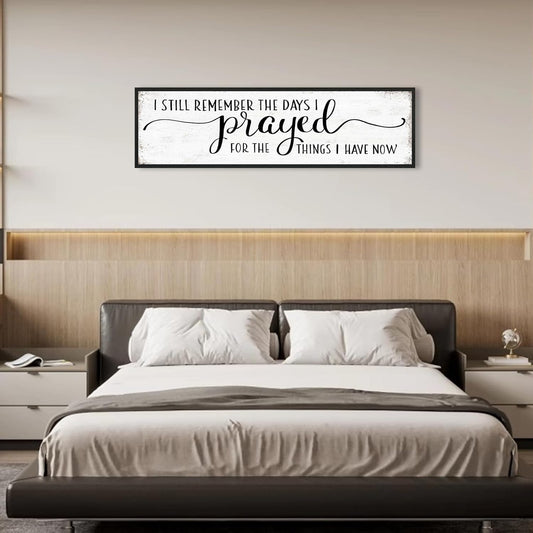 I Still Remember the Days I Prayed for the Things I Have Now Sign: Modern Bedroom Signs Wall Decor Above Bed Farmhouse Country Rustic Wall Art Framed Family Signs Hanging Wall Plaques 12 x 40 Inch