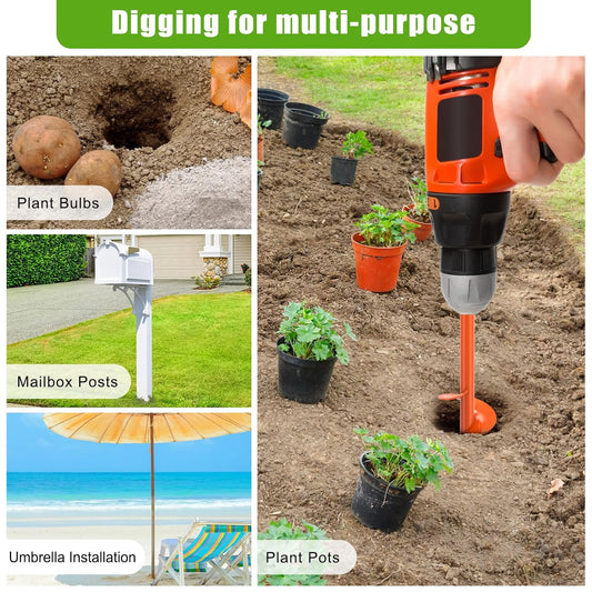 4 Pack Garden Auger Drill Bit for Planting,Ground Soil Earth Spiral Drill Bits for 3/8" Hex Drive Drill, Auger Drill for Bulbs Planting, Hole Digger Flowers,Bedding Digging Plant Rapid Planter Tool