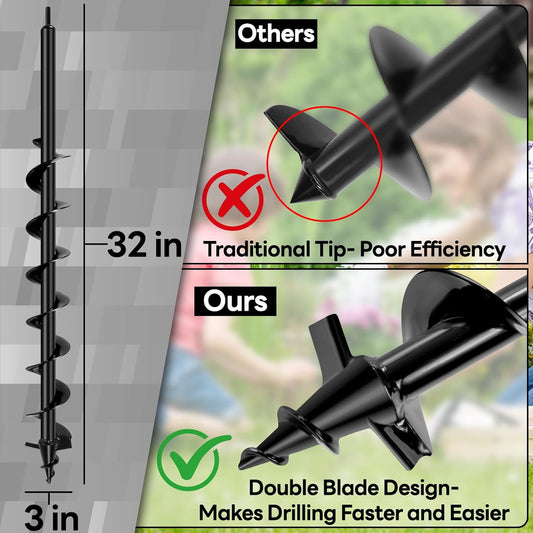 Upgraded Auger Drill Bit for Planting, 3''x32'' Drill Auger for Digging Holes, Heavy Duty Post Hole Digger for Garden Planting, Bulbs Fences Umbrella Holes, Fit 3/8" Hex Drive Drill