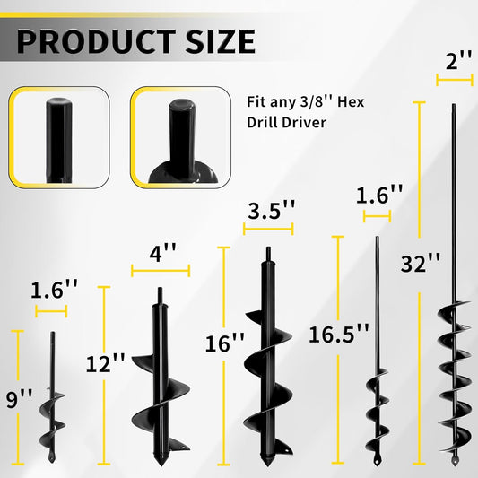 5pcs Auger Drill Bit for Planting - Plant Auger for Cordless Drill - Bulb Planter Tool for Bulbs Planting&Holes Digging - 3/8" Hex Drive Drill