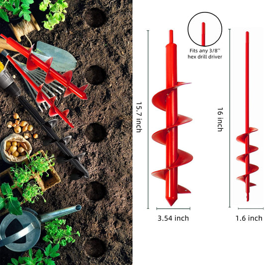 Garden Auger Drill Bit for Planting-1.6x16'' & 3.54x15.7,Ground Earth Spiral Drill Bit for 3/8" Hex Drive Drill, Yard Auger Drill for Bulbs Planting, Hole Digger Flowers,Umbrella Holes,Bedding Digging