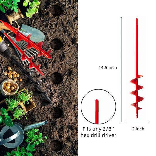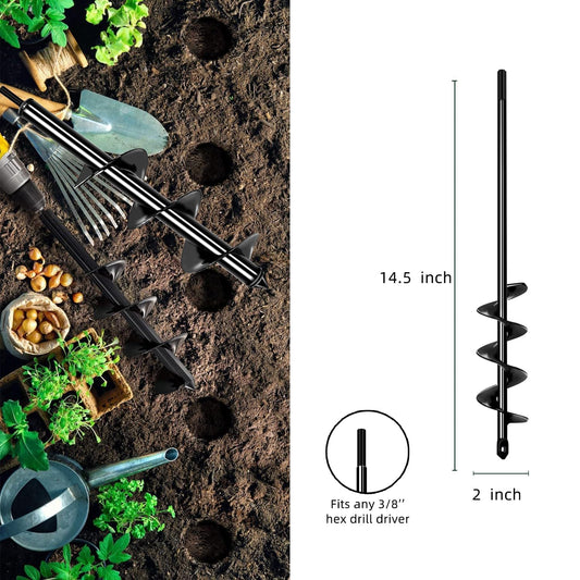 Garden Auger Drill Bit for Planting 2x14.5, Spiral Ground Auger Drill for 3/8" Hex Drive Drill, Bulb and Flower Planter Tool