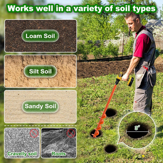 Auger Drill Bit for Planting 3''x32'' Garden Earth Auger 3mm Thicker Drill Augers for Digging Holes Heavy Duty Auger Post Hole Digger for Bulb, Flowers, Plants - Fits 3/8" Hex Drive Drill