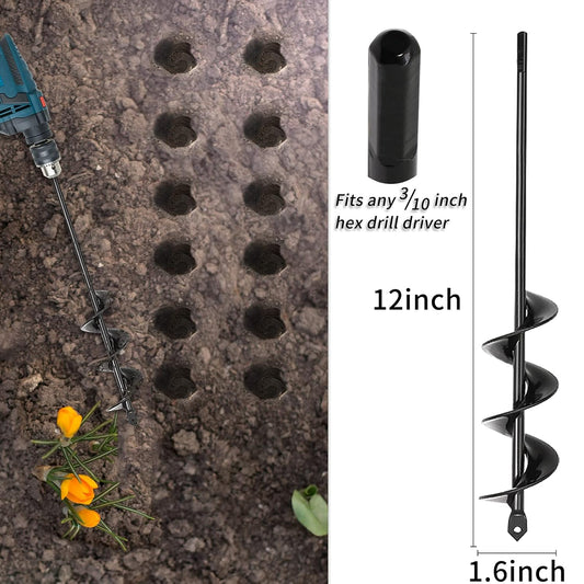 TCBWFY Auger Drill Bit for Planting,1.6"x12"Solid Shaft Garden Auger Drill Bit with Extensive Spirals,Spiral Hole Drill Bit for Planting Bulbs,Flowers,Post Holes,Earth Auger for 3/8" Hex Drive Drill