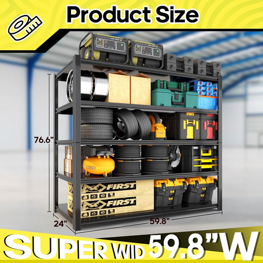 5 Tier Adjustable Metal Shelving Storage Rack,Storage Shelves,59.8" Wx24 Dx76.6 H Garage Shelving Heavy Duty,Industrial Shelving Unit for Basement,Warehouse,Garage Organization.4 Pack