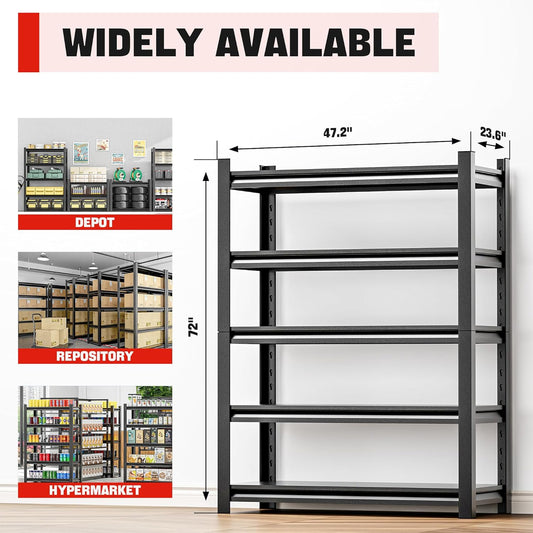 5 Shelf Heavy Duty Garage Shelving – Durable Metal Storage Shelf Organizer for Garage, Workshop, or Utility Rooms, Heavy Duty Shelving Rack for Maximum Strength 24" D x48 W x72 H