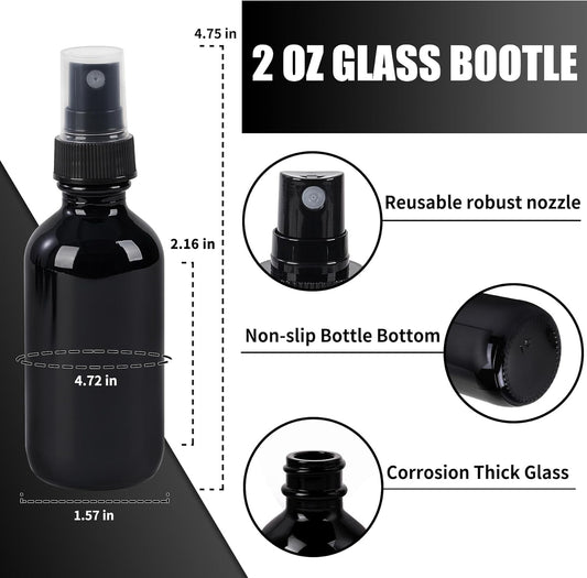 2 oz Glass Spray Bottles, Reusable Fine Mist Sprayer Small Spray Bottle, Leak-Proof Design, Perfect for Travel, Skin Care, Perfumes, Botanical, Cleansing (Black, 2oz-12pcs)