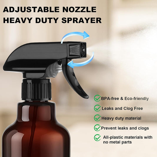 Glass Amber Spray Bottles with Silicone Sleeve, 2 Pack 16.9oz Refillable Containers with Adjustable Spray Nozzles, Empty Spray Bottle for Cleaning Solutions, Hair, Plants, Essential Oils (Black+Grey)