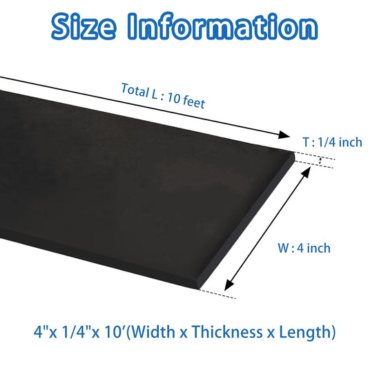 Black Solid Rubber Strip, 1/4 (.25)" Thick X 4" Wide X 10'Long, Solid Flat Rubber Roll for Anti-Slip, Anti-Vibration, DIY Gaskets, Crafts, Sealing, Supports, Protection